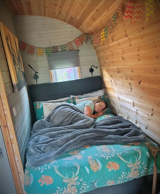 Our upscale glamping pod, situated in close proximity to Offa's Dyke, a renowned ancient earthwork and hiking trail, is aptly named after it. The pod is a charming and intimate accommodation for two, boasting a tasteful woodland-themed decor, complete with luxurious faux furs adorning the bed and captivating local landscape artwork gracing the walls.